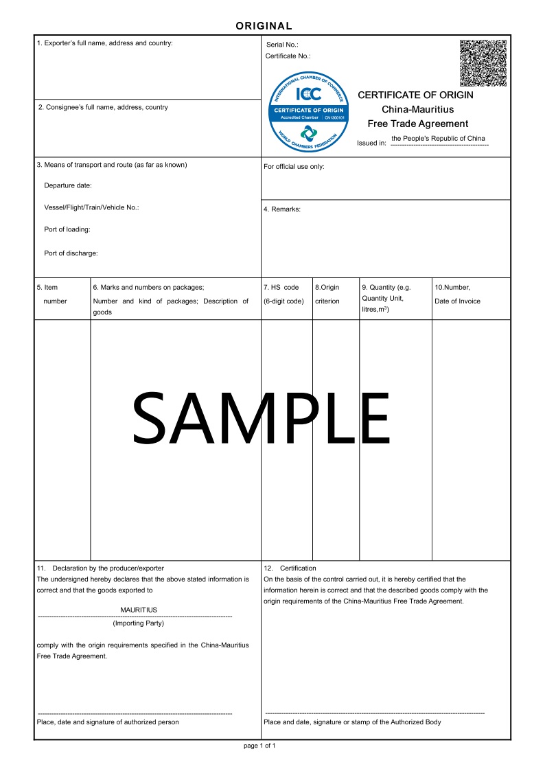 中国贸促会及其地方分会可签发非优惠原产地证书和优惠原产地证书。”