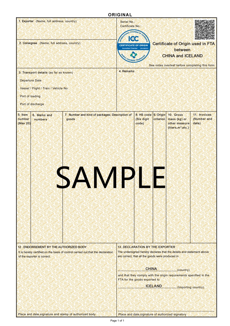 商品备案审核通过后,在中国国际贸易促进委员会原产地证申报系统中提交优惠原产地证书申请,由贸促会审核4. 签发