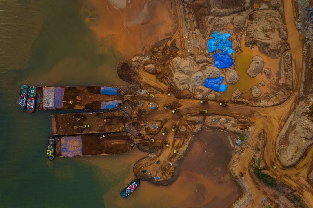 俯瞰印尼苏拉威西岛一家镍矿厂的码头。开采红土镍矿可能对环境和植被造成不可逆的影响