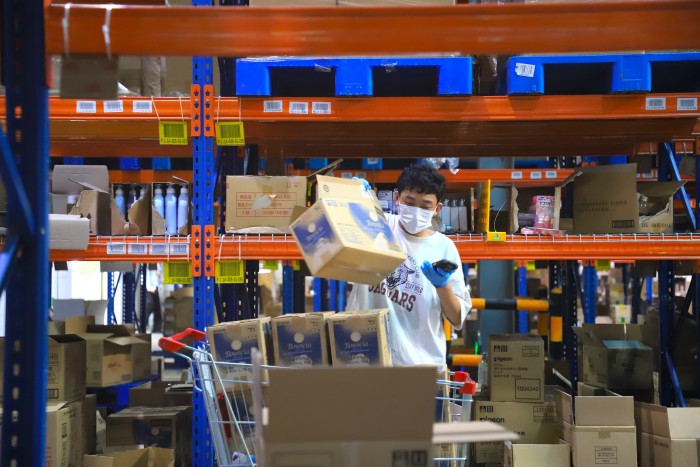 工作人员在保税仓内拣货 拍摄:张熹珑
