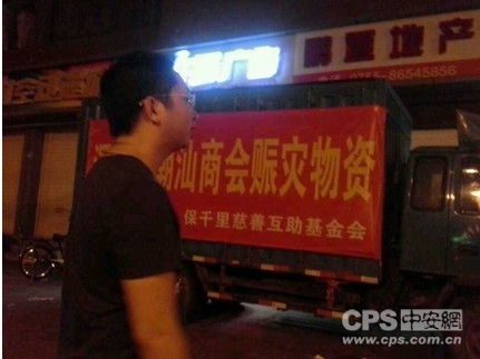 保千里在潮汕商会组织下连夜赶赴灾区捐赠物资