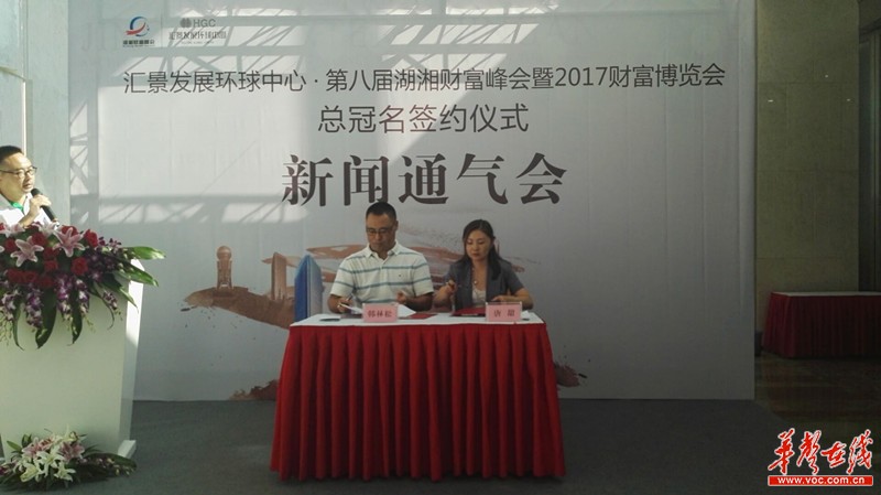 华声在线9月15日讯(记者 邓桂明 通讯员 陈瑶)今日下午,“汇景发展环球中心”第八届湖湘财富峰会暨2017财富博览会总冠名签约仪式新闻通气会,在汇景发展环球中心营销中心圆满举行。