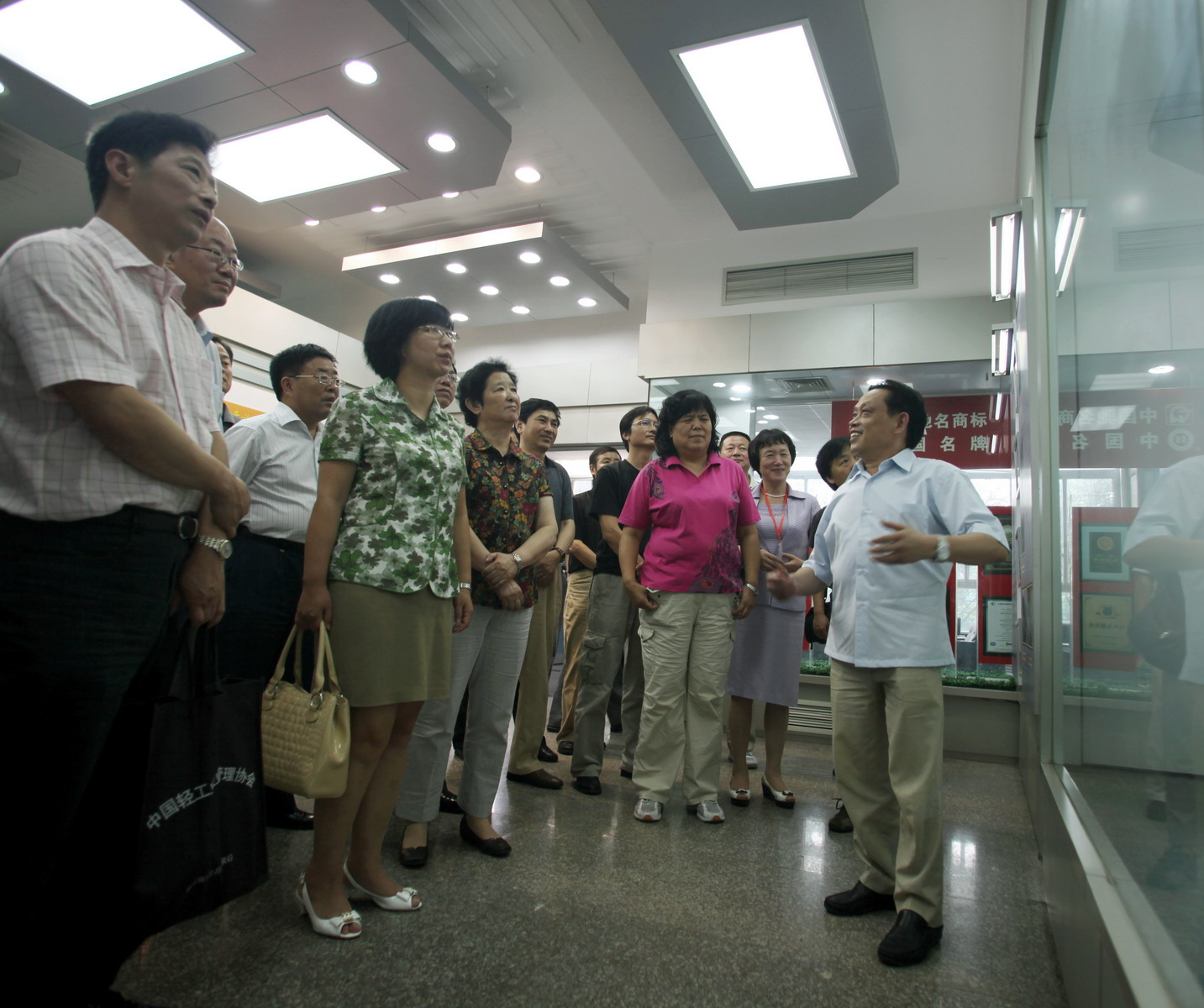 与会代表参观成都股份有限公司荣誉室,集团公司董事长刘荣富同志介绍彩虹电器集团白手起家、艰苦创业,以小产品占领大市场和持续进行股份制改革的历程