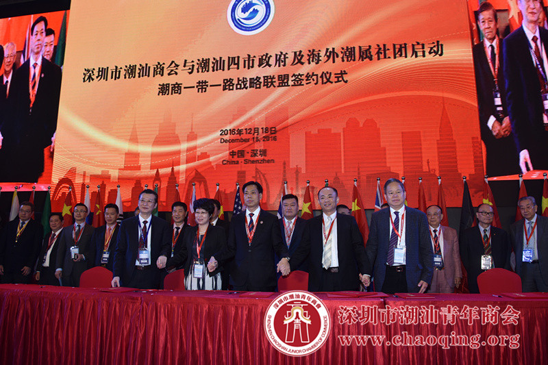 论坛上,我会和深圳及潮汕四市政府的有关部门、海外10多个国家和地区的50多家潮属社团签订国际潮商“一带一路”战略合作协议,目的在于构建一个大联合、大经贸、实体化、财团化的国际潮商联盟创新发展平台。而商会注册成立的深圳潮商一带一路控股有限公司就是联盟实体化,担负整合潮商资源,擦亮潮商金字品牌,以第三方力量参与国家“一带一路”战略实施,承接项目及下游产业的拓展。这个联盟,有利于将深圳市潮汕商会经济合作道路延续和拓宽。经过十年的发展,商会在打造经济平台、促进投资合作等方面已经积累了不少经验。特别是组建了潮商集团等一系列实体化机构,投资建设了前海国际金融能源中心和潮阳高铁站广场等项目,就是平台经济和效益共享的最好写照。现在成立国际潮商“一带一路”战略合作联盟就是利用国家政策和潮商联盟第三方力量,走大联合、大发展的创新举措,有利于国际潮商观念创新,资源整合和自身蜕变,进一步提升品牌影响力。