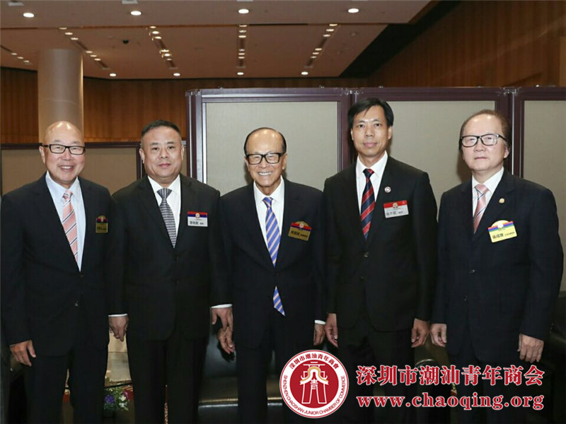 2016年11月8日,深圳市潮汕商会会长吴木棠(右二)出席香港潮州商会就职典礼,与长江实业集团主席李嘉诚先生(中)等人合影。