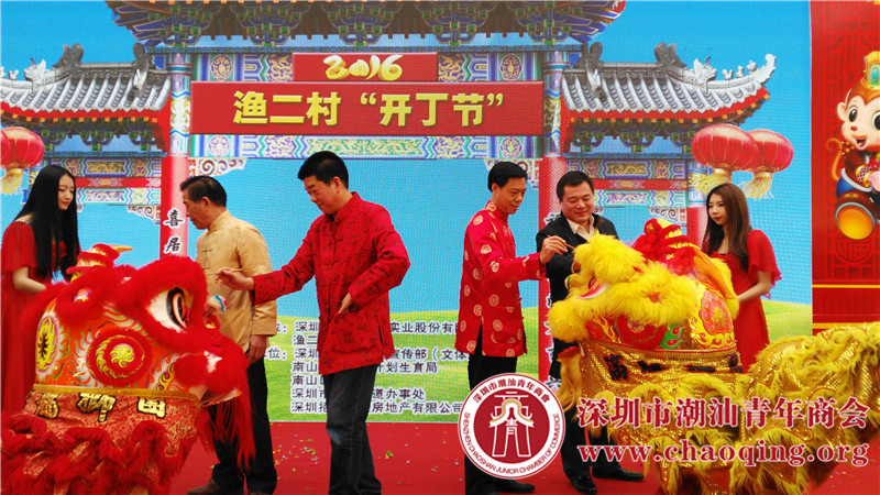 招商蛇口股份公司副总经理何飞、润德集团董事会主席吴木棠、深圳市蛇口渔二实业股份有限公司董事长吴宜巧、深圳市蛇口渔二实业股份有限公司总经理徐业共同出席渔二村“开丁节”仪式。