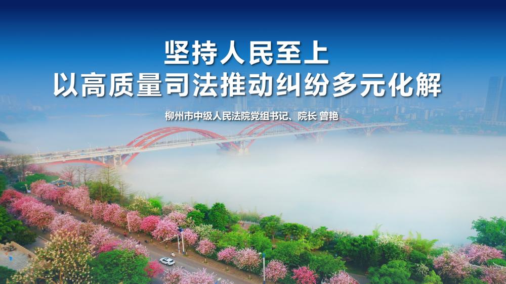 曾艳院长在发言中指出,柳州市两级法院始终践行以人民为中心的发展理念,按照中央和最高人民法院的部署,坚持改革创新,勇于探索。全市法院在党委的领导下,积极创新和发展“枫桥经验”与基层社会治理相融合的柳州新范式,主动融入柳州市委政法委领导下诉源治理大格局,一体推进“321”矛盾纠纷全链条多元化解机制建设,助力在全市范围整体构建普通民事纠纷在村社区调解不少于3次、乡镇街道调解不少于2次、县区调解不少于1次的诉前分级多元解纷体系,高站位推动柳州基层矛盾纠纷调处化解“321”工作法落实落地。2022年,全市法院共受理各类案件101850件,同比减少17605件、下降14.74%;其中一审民商事案件同比减少21504件、下降36.39%,案件同比减少绝对数及诉源治理成效指标均位居全广西第一,诉源治理成效明显。
