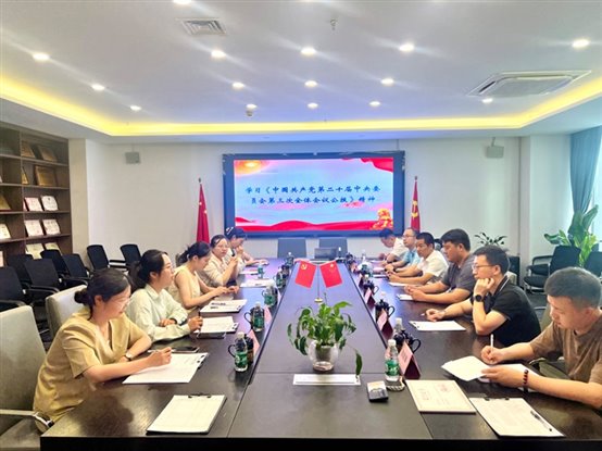 本次会议上,参会党员同志们集中学习了《中国共产党二十届中央委员会第三次全体会议公报》,大家一致表示,要更加紧密地团结在以习近平同志为核心的党中央周围,把深入学习贯彻全会精神和企业发展与改革创新实践紧密结合,脚踏实地、真抓实干,为促进江苏经济高质量发展贡献力量,为增强苏渝两地社会经济文化建设添砖加瓦。