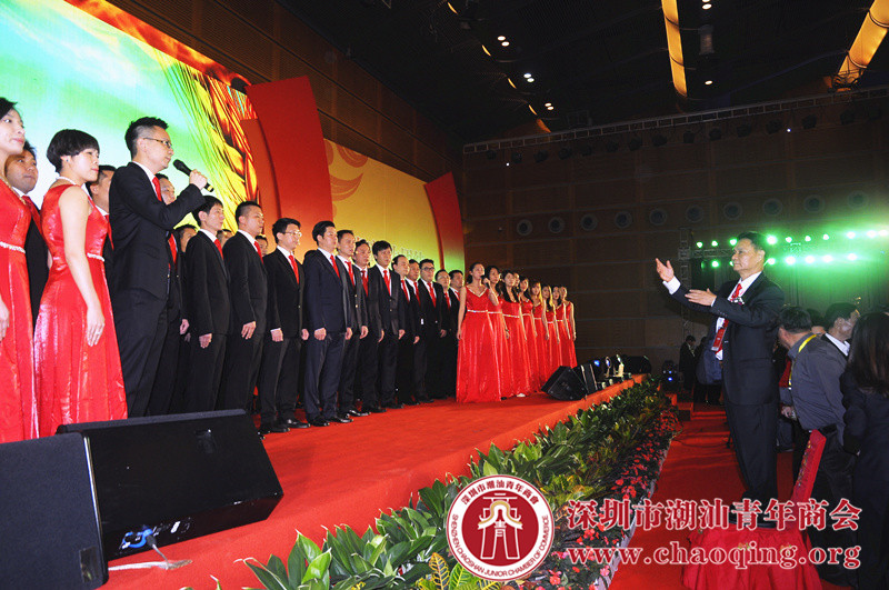 2013年12月14日,李奕标会长率领潮青100人合唱团,在深圳第六次潮商大会上登台演唱。黄育宏会长指挥潮青大合唱《歌唱祖国》。