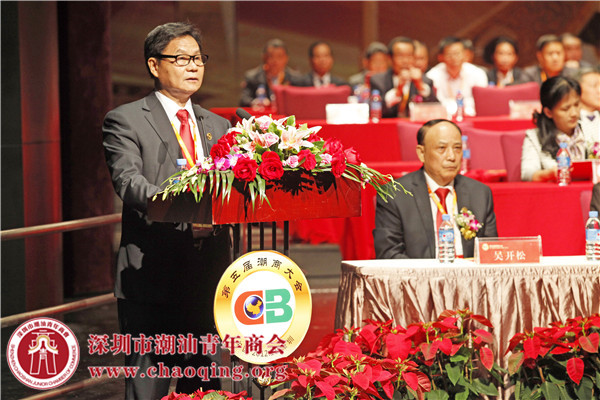 2012年11月14日上午,第五届潮商大会暨“潮商走向国际大联合”论坛开幕庆典隆重召开。大会执行主席、深圳市潮汕商会驻会常务副会长黄育宏主持开幕式。