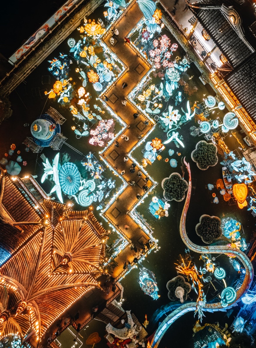 前不久,大豫园片区启动建设后的首场民俗文化活动——2023豫园灯会“山海奇豫记”亮灯。灯会取材自中国古典文献《山海经》,“老故事新讲”,结合非遗灯彩工艺,配合大量多媒体、AR技术,塑造了一个奇幻场景,将灯会搬进元宇宙,受到游客追捧,还被外交部及我驻外机构向海外集中推荐。