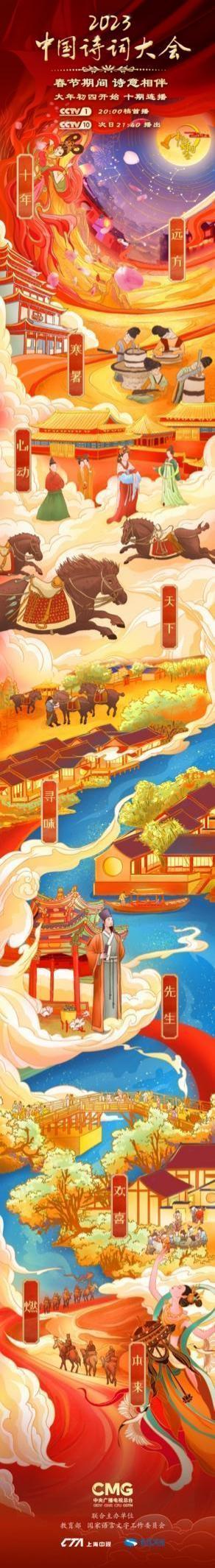 癸卯新春,万家团圆,一年一度的诗意盛宴如约而至。由中央广播电视总台联合教育部、国家语言文字工作委员会共同推出的《2023中国诗词大会》于大年初四(1月25日)起在中央广播电视总台CCTV-1 20:00档十期连播,CCTV-10 次日21:40十期连播。