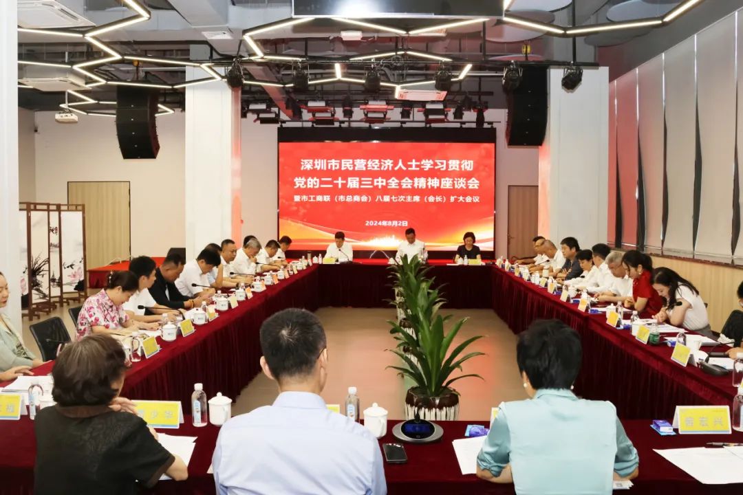 8月2日下午,深圳市工商联组织召开全市民营经济人士学习贯彻党的二十届三中全会精神座谈会暨市工商联(总商会)八届七次主席(会长)扩大会议,传达学习党的二十届三中全会精神。深圳民营企业家纷纷表示,全会吹响了新时代改革再出发的嘹亮号角,为民营经济注入“强心剂”,民营企业家将坚定信心、奋发进取、勇于创新,在新时代新征程展现特区民营企业家新的担当与作为。会上还印发了《全市工商联系统学习宣传贯彻党的二十届三中全会精神工作方案》,并就贯彻落实作了部署安排。