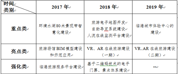 积极推动旅游场 馆、设施的智慧化建设和改造。结合BIM技术的示范应用建设,选取天文馆、极地海洋世界、科创城旅游体验场馆等一批代表临港特色的旅游场馆,开展BIM技 术在场馆开发建设、运营管理和对外服务领域应用试点,加快探索室内定位技术在旅游场馆的应用。发挥VR、AR新兴技术在智慧旅游领域应用,推进临港在线旅 游建设。加大二维码技术的应用,建设基于二维码技术的电子门票、景点及旅游设施介绍宣传体系。大力推进临港智慧城市体验中心建设,整合汇聚临港城市管理、 产业经济、社会民生各领域建设的优秀成果资源,为市民、游客、外来考察团队提供一站式的临港智慧城市建设发展体验。
