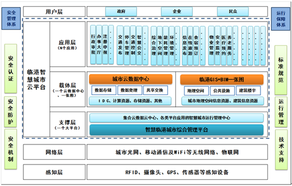 打造以智慧临港城市综合管理平台为核心、临港城市云数据中心、GIS+BIM地理信息平台为主要支撑的关键、基础性系统平台,逐步形成覆盖全、渗透广的 智慧临港建设发展基础服务体系,为各类城市管理和服务的智慧应用构建和管理运行奠定基础,作为临港城市智能化、精细化发展的关键支撑和核心载体。