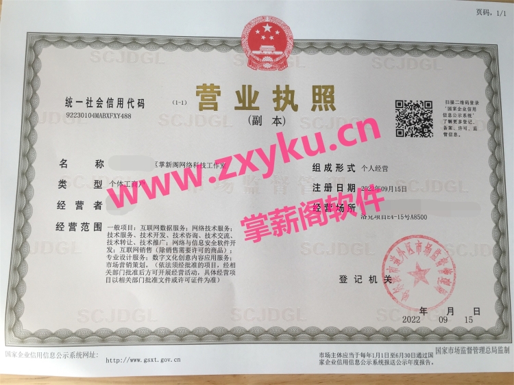 掌薪阁团队工作室营业执照【已进行打码处理】: