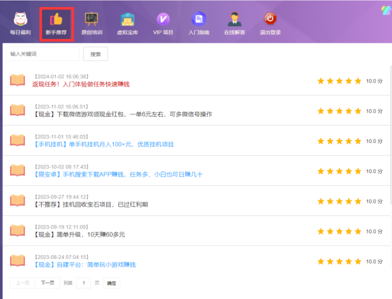 2.现金类的:同样是短期赚钱,第一个栏目是我们单独拿出来讲的,新手推荐栏目的现金类项目能做的周期更长,有些项目到现在都存活了几年依然坚挺。