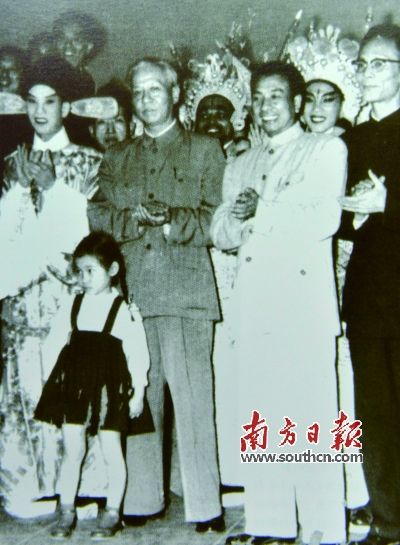 1957年4月,刘少奇在广州观看演出并与演员合影。