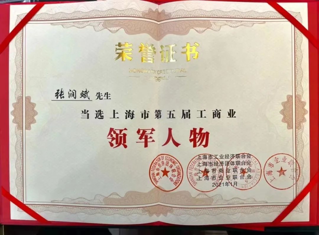 2021年,当选上海市第五届工商业领军人物