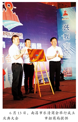 南昌市乐清商会成立 6月13日,南昌乐清商会在南昌瑞颐大酒店举行成立庆典大会。来自广州、沈阳、青岛、广东中山等全国各地乐清商会的会长或秘书长等应邀参会,共同见证了商会成立。乐清市副市长范晓东和市招商局的负责人、南昌市工商联和当地政府的有关领导出席成立大会,范晓东与南昌市工商联的领导在会上致辞祝贺。庆典活动期间,举行了“乐清市招商引资洽谈会”,乐清市招商局副局长陈明乾作了招商项目推介,副市长范向东讲话,希望广大乐商积极响应市委、市政府号召,回乡投资兴业。