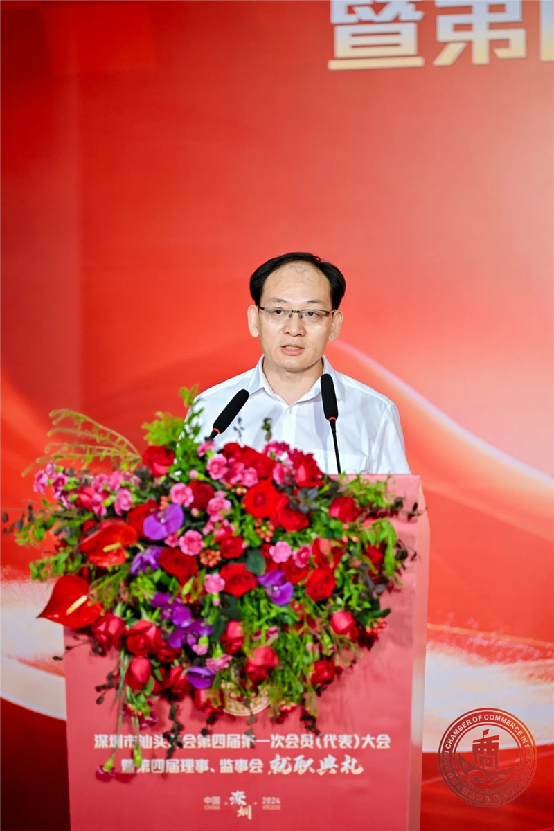 今天,汕头商会迎来了第四届就职典礼,我相信在郑基明会长和陈明勤监事长的领导下,新一届理事、监事会能够团结一心,继续弘扬潮商精神,不断开拓创新,积极开展各项工作,促进深圳市和汕头市之间在经济、文化、教育等领域的更深入合作,共同推动两地经济的蓬勃发展,为深圳和汕头的发展作出更大的贡献。借此机会,我对汕头商会的发展提出以下期望和建议: