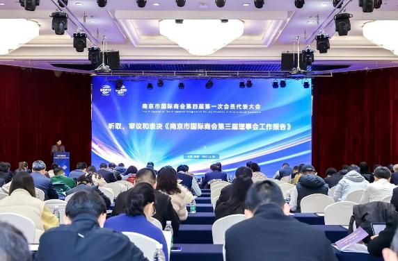 11月30日上午,南京市国际商会(下称:商会)召开第四届第一次会员代表大会,审议商会第三届理事会任期内各项工作,选举产生商会新一届理事会和领导班子,市贸促会梁洁会长当选商会第四届理事会会长。江苏省国际商会副会长丛苏峰,市工商联党组成员、副主席陈荣,市社会组织管理局副局长姚晓宁到会祝贺,大会还收到了中国国际商会以及上海国际商会、江苏省国际商会、安徽省国际商会、广东省国际商会、杭州市国际商会等国内众多兄弟商会发来的贺信。市贸促会有关领导、部室负责人及商会企业代表近200人参加会议。