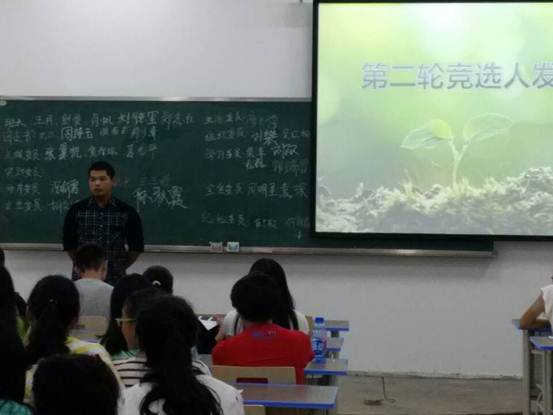 3、同学们自荐,在黑板上写上名字与竞选的职位,并作竞选演讲。