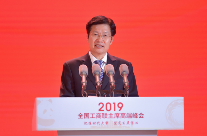 10月10日上午,以“把握时代大势·坚定发展信心”为主题的2019全国工商联主席高端峰会在成都举行。来自全国工商联和各省(区、市)工商联的代表、省内外知名民营企业家等500多名嘉宾齐聚一堂,共谋民营经济健康发展大计,共享新时代四川发展机遇。全国政协副主席、全国工商联主席、中国民间商会会长高云龙出席峰会并讲话,省委书记、省人大常委会主任彭清华致辞,中央统战部副部长、全国工商联党组书记、常务副主席徐乐江主持峰会。省政协主席柯尊平出席。