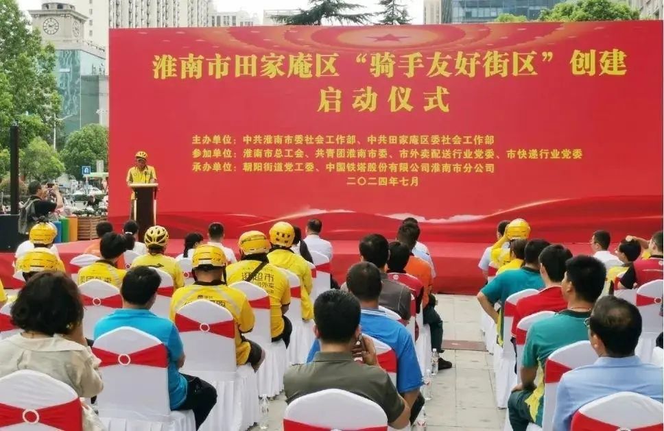 不仅绘制友好路线图,淮南市还在“骑手友好街区”内,打造了37个“暖新驿站”,设立9个“暖新补给站”,评选19家挂牌“暖新商户”,设置8处临时停车点,选聘40余名快递员、外卖配送员兼任11个社区的网格员,推动快递员、外卖配送员与社区“双向奔赴”。