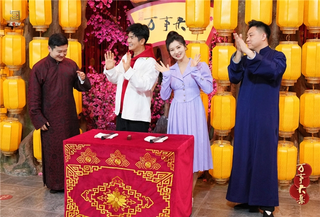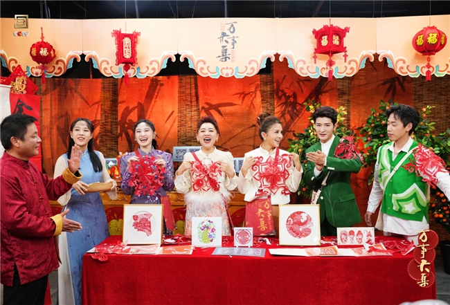 写福字、贴春联、逛花市、看曲艺、赏非遗、品年俗……一场“走出演播室”的春节大集,满足观众关于春节的所有想象。从“万事大集”的舞台到“新春美食铺”,再到“新春纸艺铺”,春节期间,《万事大集—2024新春大联欢》不仅是观众的“逛吃宝典”,也成了大家争相解锁的“年味密码”。“吃着小吃听相声、买着好物看大戏”,在全新场域中寻求形式的创新和内容的突破,特别节目呈现了生活的诸多美好,绘就出一幅新意满满的春节图景。