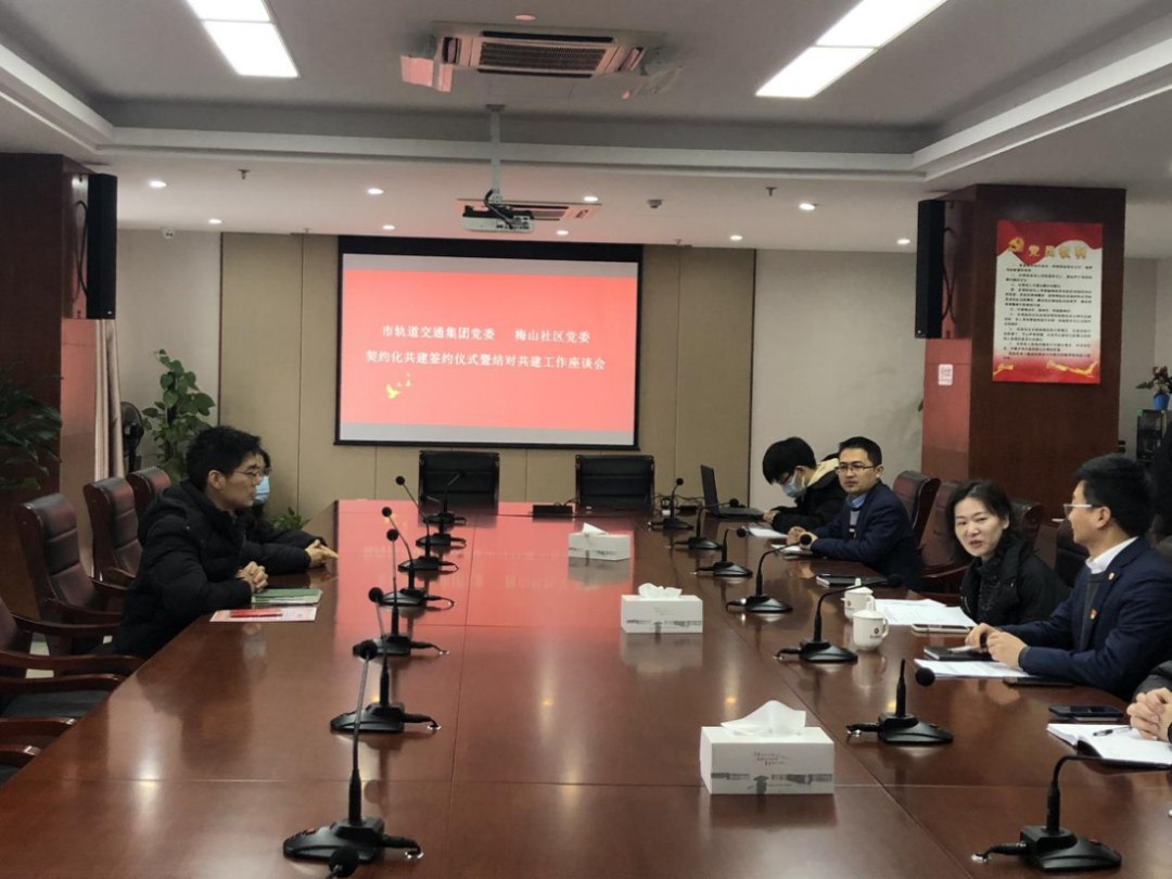2月10日上午,梅山社区党支部和市轨道交通集团党委开展了契约化共建签约仪式和结对共建工作座谈会。首先,市轨道交通集团的党员志愿者分享了在支援上虞的感想感受,深刻体会到各级党员干部、群众志愿者对于此次疫情防控付出的努力。社区书记丁诗玮送上感谢信,感谢他们在2021年年底社区全员核酸、人员排查等疫情防控工作上的辛勤付出。双方共商“菜单”,签订共建合约。最后,集团和社区商讨了今年计划开展的一系列共建活动,并且着重讨论地铁施工给社区居民带来的各种问题及解决方案。