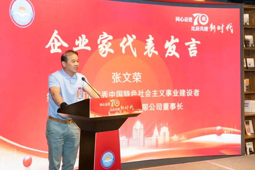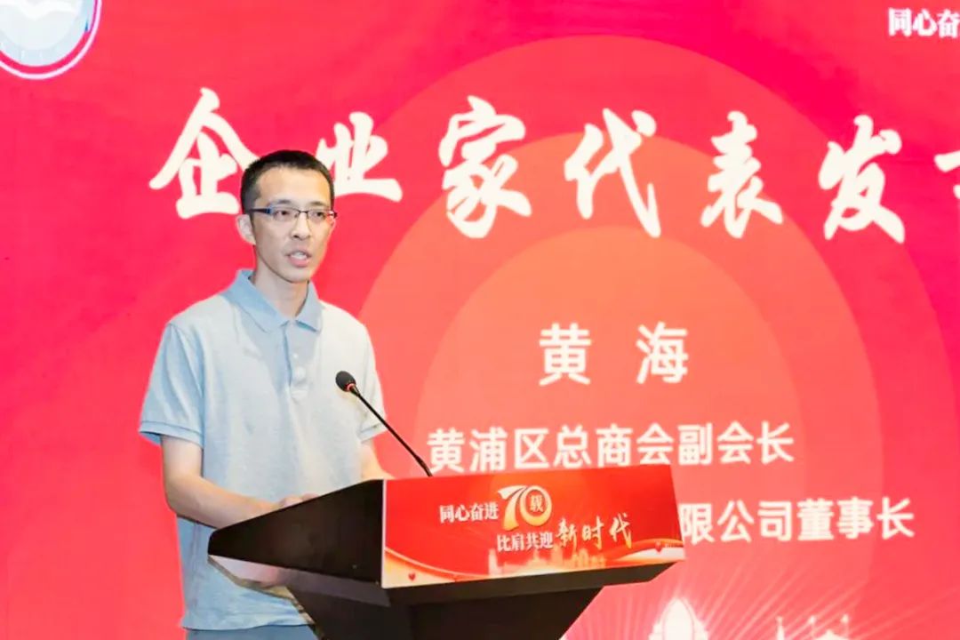全国和上海市优秀中国特色社会主义事业建设者、上海亚龙投资(集团)有限公司董事长张文荣,黄浦区总商会副会长、上海瞰掌信息科技有限公司董事长黄海,分别代表两代企业家上台进行交流发言。他们各自介绍了不同历史时期的创业与守业经历。