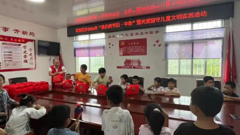 苏仙石乡在琉璃河村新时代文明实践站开展我们的节日·中秋暨关爱留守儿童文明实践活动,为孩子们送上精心准备的中秋大礼包,让他们感受到社会的关爱,增强幸福感和归属感。