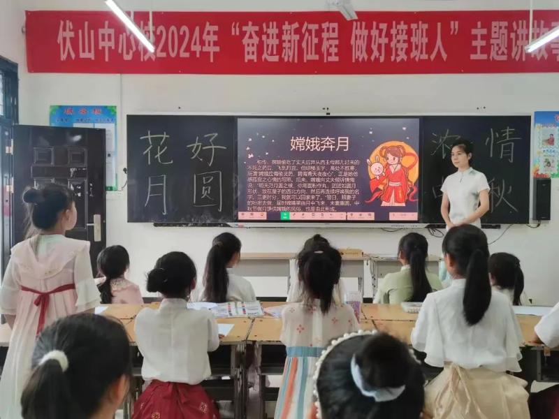 伏山乡中心校开展以古韵中秋 享欢乐为主题的中秋节系列活动,包括利用班会、黑板报、手抄报等形式,向学生普及中秋节由来和习俗;制作各种各样、口感不一的月饼共同品尝,体验分享的快乐;组织开展中华经典诵读活动,演绎与中秋有关的名篇佳作,让学生沉浸式体验中秋文化……引导学生了解传统节日习俗,增强文化自信,激发爱国爱家热情。
