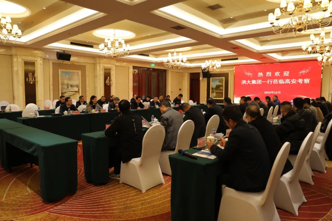 刘向飞介绍了洪大集团的企业相关情况。他表示,高安有着优越的地理位置、丰富的自然资源、良好的营商环境,是企业发展的沃土、投资兴业的宝地。接下来,洪大集团将紧密结合研判高安的特色资源产业等优势,从企业自身实际出发,进一步强化沟通对接、深化务实合作,积极投身高安建设,大力参与支持高安经济社会高质量发展。