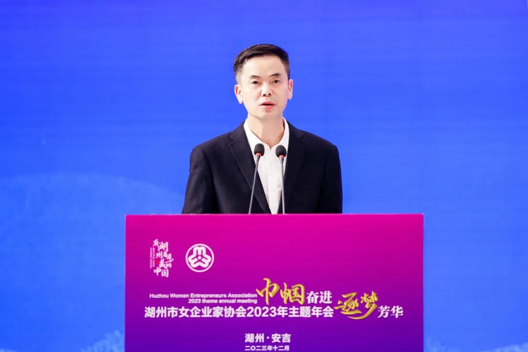 12月7日下午,“巾帼奋进 逐梦芳华”湖州市女企业家协会2023年主题年会在安吉余村举行。全市女企业家代表齐聚一堂,共叙友情、共商合作、共谋发展。市委常委、组织部长徐仲仪讲话,市委常委、县委书记杨卫东致欢迎辞,省女企业家协会会长屠红燕致辞。市妇联党组书记、主席吴云妹、市级相关部门负责人、省女企业家协会代表、市女企业家协会全体会员、各区县团体会员单位负责人、安吉县女企业家联谊会全体会员等300余人参加会议。