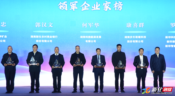 活动现场为新化县“致敬新商”光荣榜的功勋企业家、领军企业家、新锐企业家、优秀企业家颁奖。部分企业家代表作交流发言。