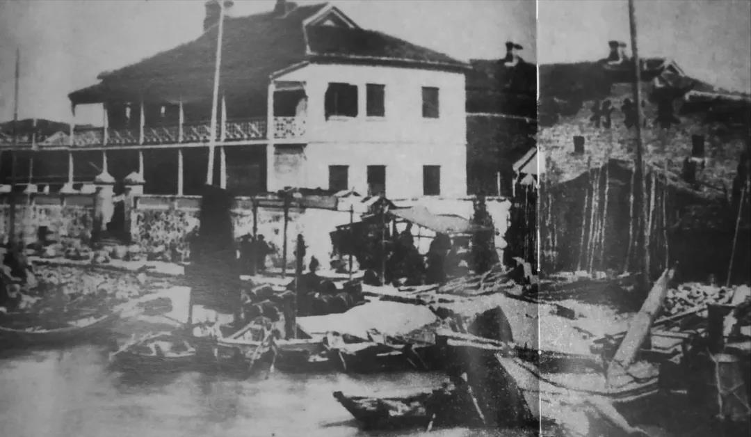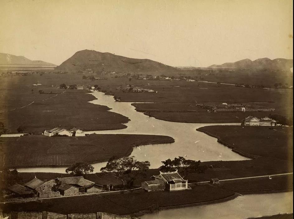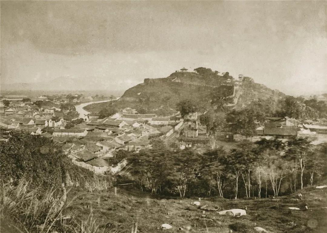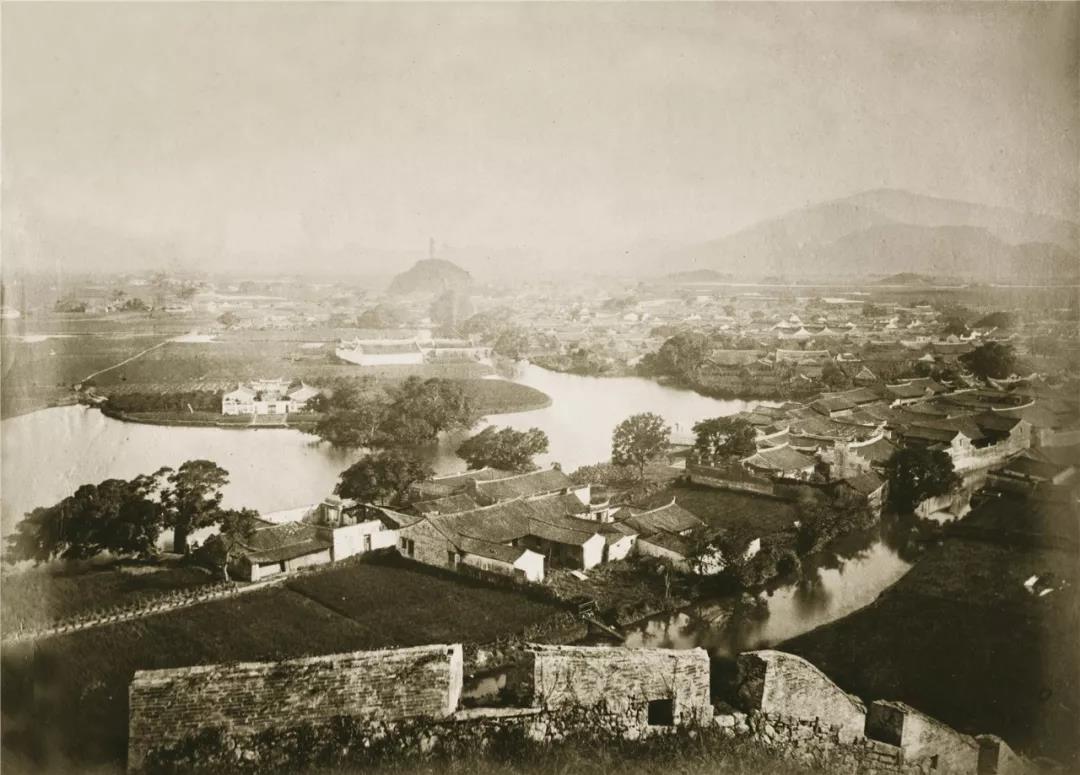 ▲积谷山向南拍,可见城墙、温州郡城南向的塘河水网、花柳塘的民宅等。1877年英国外交官摄