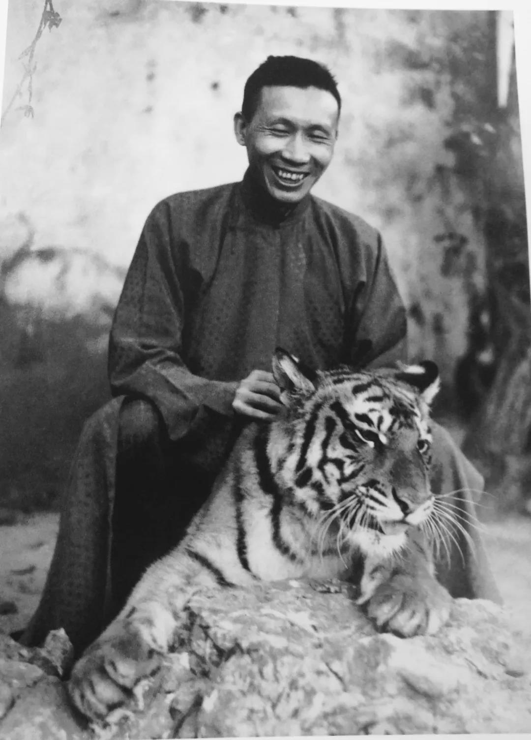 ▲1932年,温籍书法家马公愚与张善?I宠物“虎儿”。
