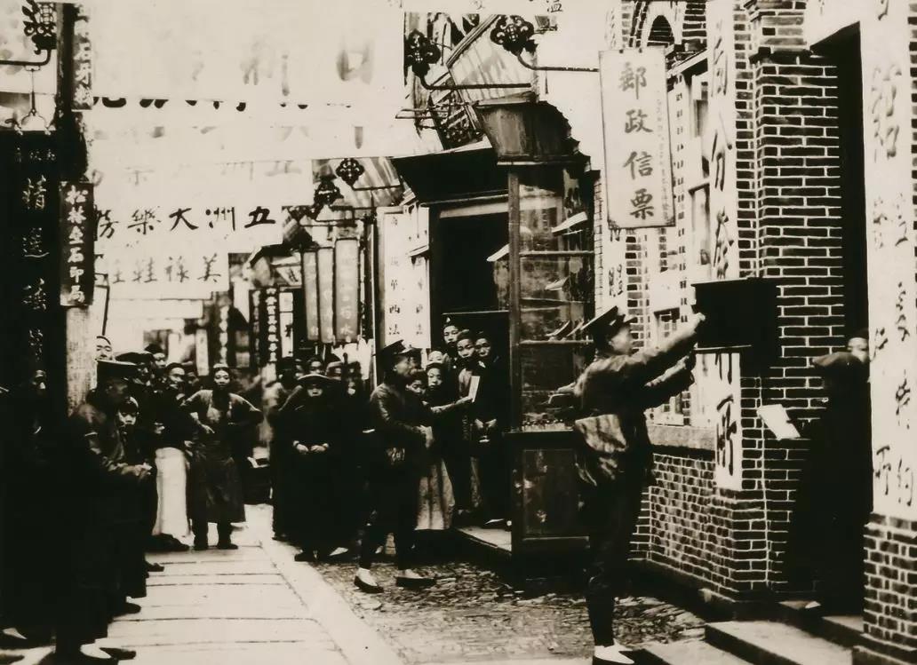 ▲抗日战争前的府前街,邮差正在开箱收取信件。