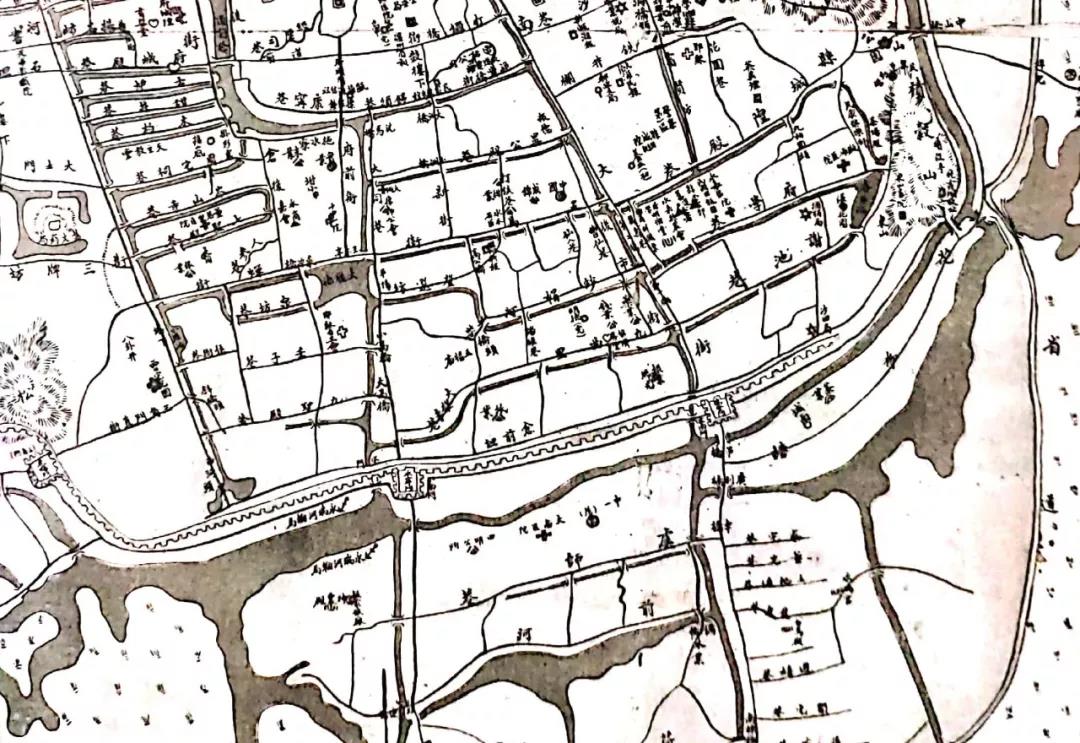 城内街区方正,坊巷临水,恰似棋盘。街区与水系紧密配合,一坊一渠,舟楫毕达。