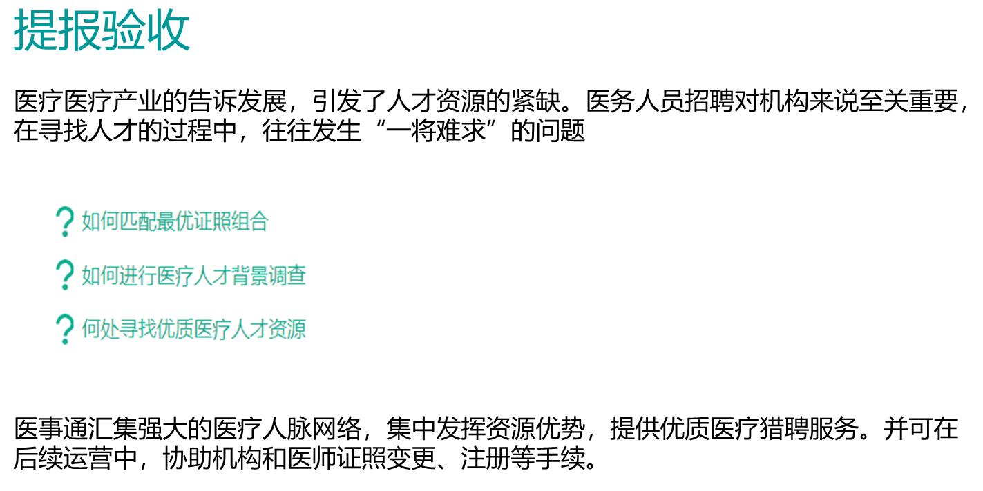 诊所门诊医院与大医院专家医生集团合作需求的对接。