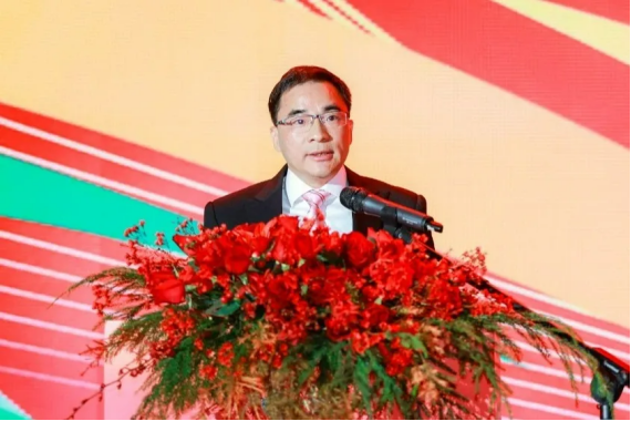 监事长温仲豪登台致祝酒词。深情寄语全体会员,号召大家在新征程上,以无畏的勇气和坚定的信念为笔,共同绘就商会未来的壮丽画卷。