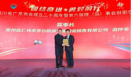 四川省经济合作局党组副书记、副局长余辉为监事长温仲豪授牌