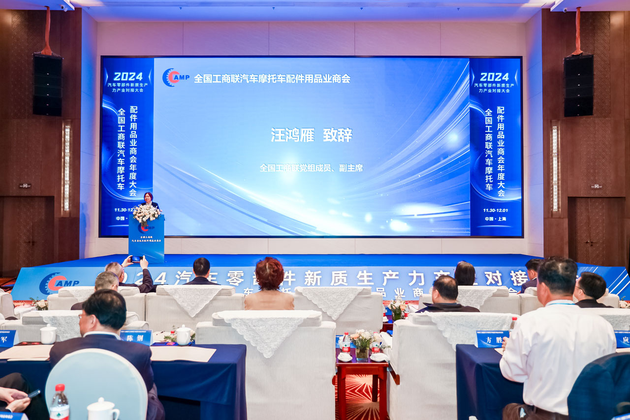 12月1日,全联汽车摩托车配件用品业商会2024年会在上海市召开。全国工商联党组成员、副主席汪鸿雁出席开幕式并致辞。上海市工商联、浙江省工商联、有关省市驻沪办事处负责人等出席开幕式。商会会员企业,汽配行业相关企业、研究机构、投融资机构代表等600余人参会。