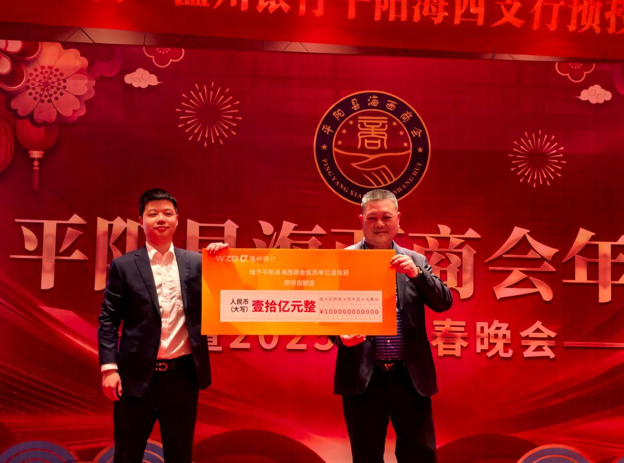 2024年12月28日,温州银行平阳海西小微综合支行与平阳县海西商会成功举行授信仪式,为商会内企业提供10亿元的授信额度,这一举措为商会企业的发展注入强大金融动力,开启银商合作共赢新篇章。