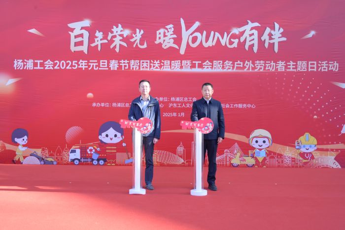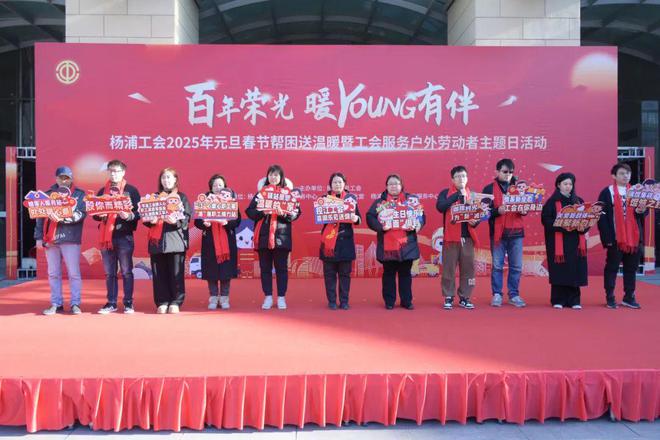人民网上海1月17日电(记者董志雯)1月15日,“百年荣光 ·暖YOUNG有伴”杨浦工会2025年元旦春节帮困送温暖暨工会服务户外劳动者主题日活动在沪东工人文化宫举办。