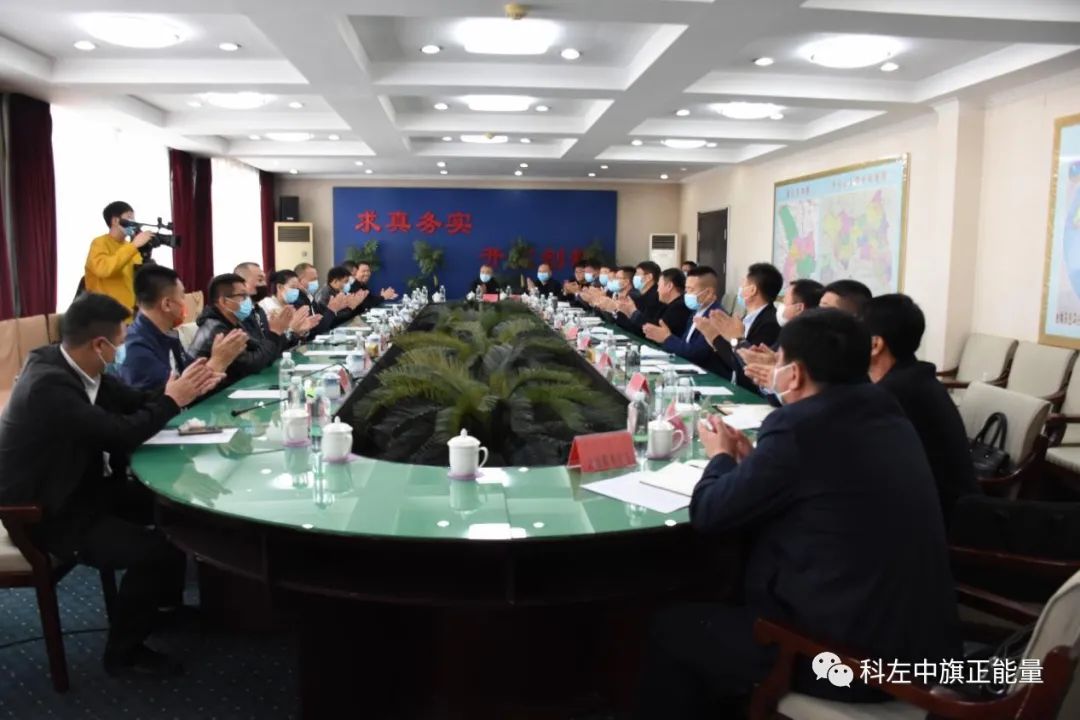 10月26日,内蒙古温州商会会长邹招波率领江苏汉成太阳能科技有限公司、南京伟皓环保科技有限公司、内蒙古千亿汇智慧城市建设有限公司等10家企业到科左中旗考察并座谈。旗委副书记、政府旗长那日苏,旗委常委、政府副旗长韩士忠,旗政府办、区域经济合作服务中心、发改委、工信科局等部门负责同志参加座谈。