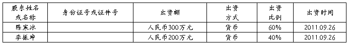 第五条 股东的姓名或者名称、出资方式、出资额和出资时间如下: