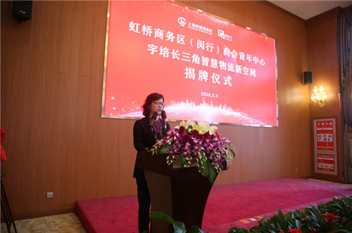 共青团上海市委副书记邬斌和闵行区委常委、统战部部长李红珍出席并为虹桥商务区(闵行)商会青年中心、宇培长三角智慧物流产业园区新空间揭牌、致辞。闵行区统战部、工商联、团区委、南虹桥管委办和新虹街道等领导出席揭牌仪式。